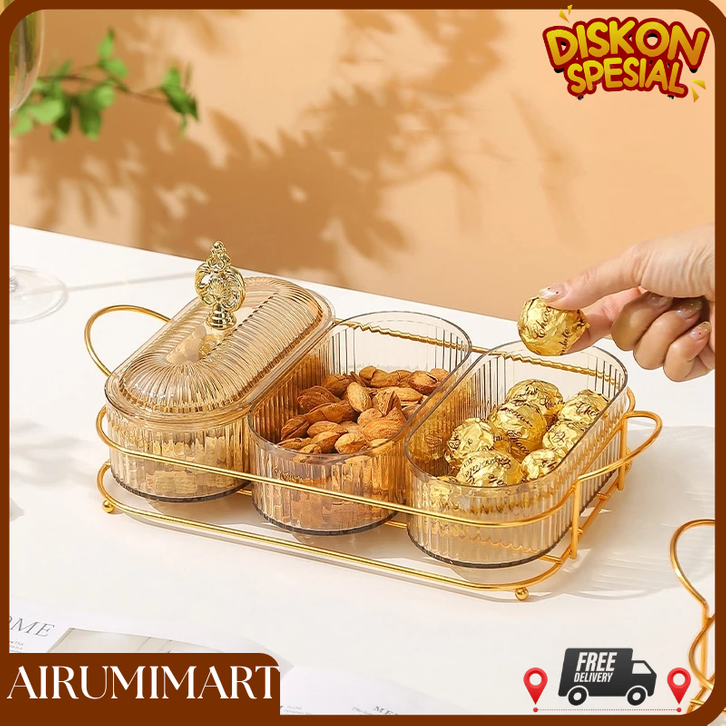 toples lebaran SUITIN Tingkat Tempat Buah Rangka Besi Baki dengan Tutup Toples Tempat Buah Snack Kopi Makanan TERLARIS