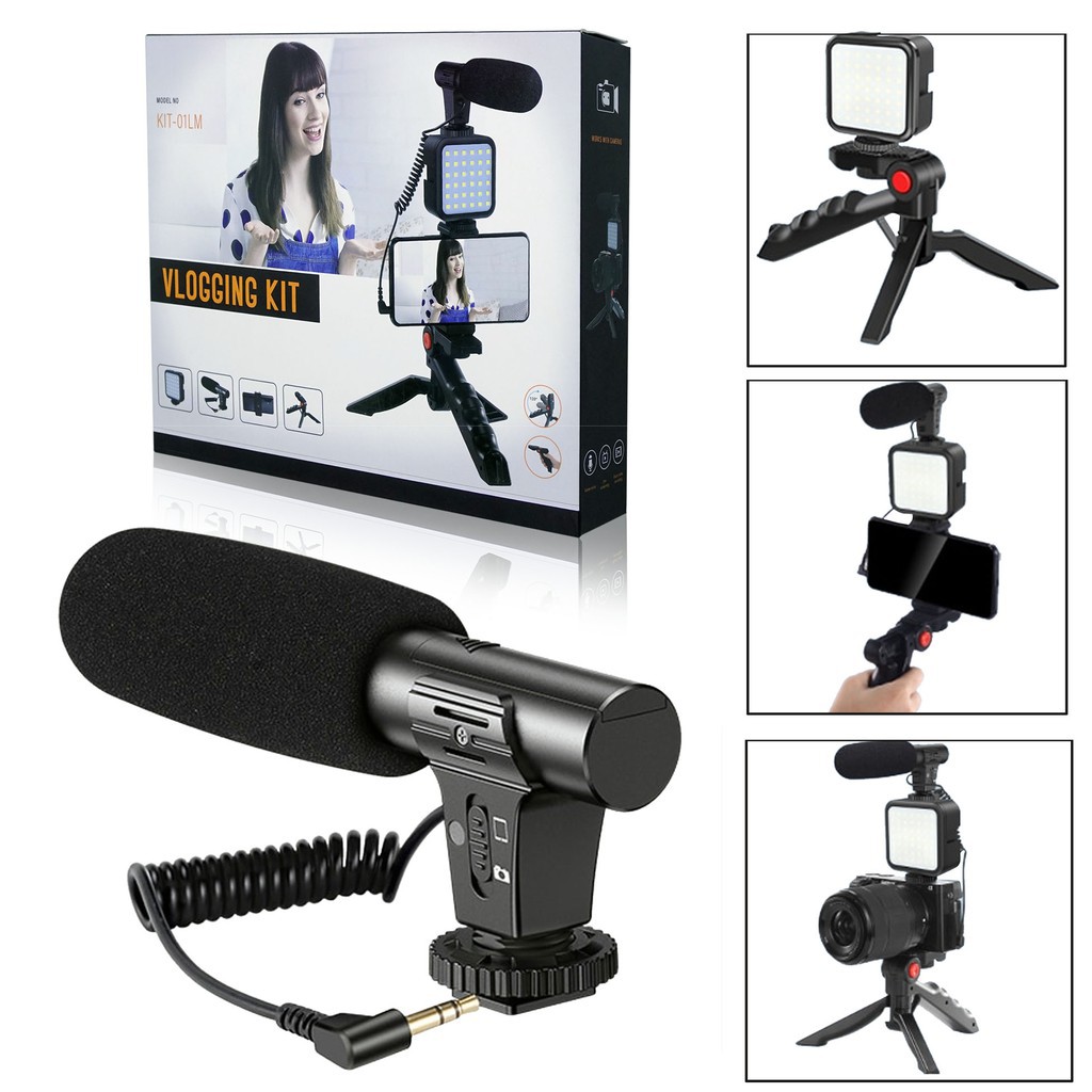 PAKET VLOG Vlogger Vlogging dan Live streaming Kamera Vlog Youtuber Lampu Vlogging Set All in One LED Tripod Microphone