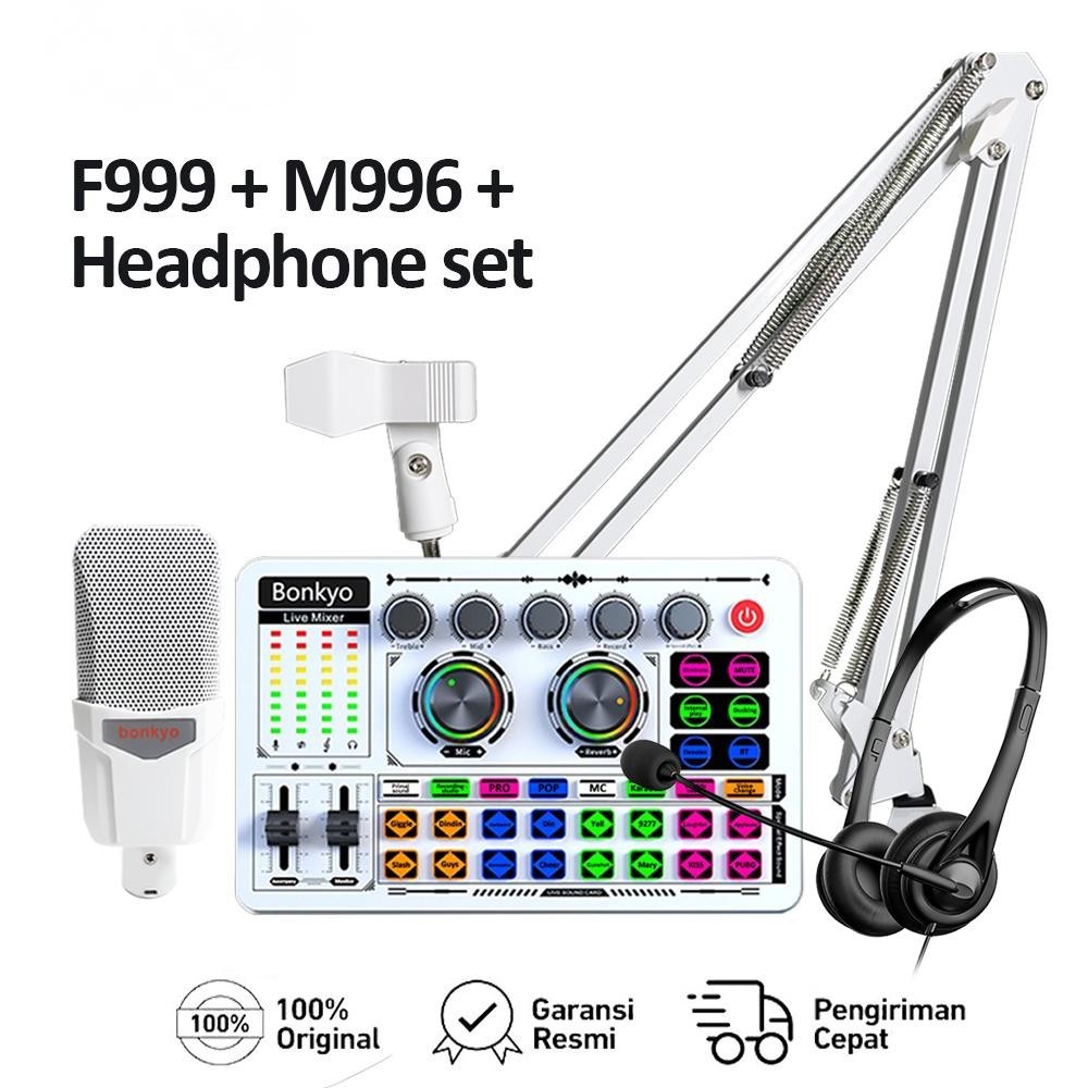 Bonkyo F999 soundcard white +MIC M996+ headset SoundCard Bluetooth compatible External Wireless DJ Mixer Pengurangan Keb