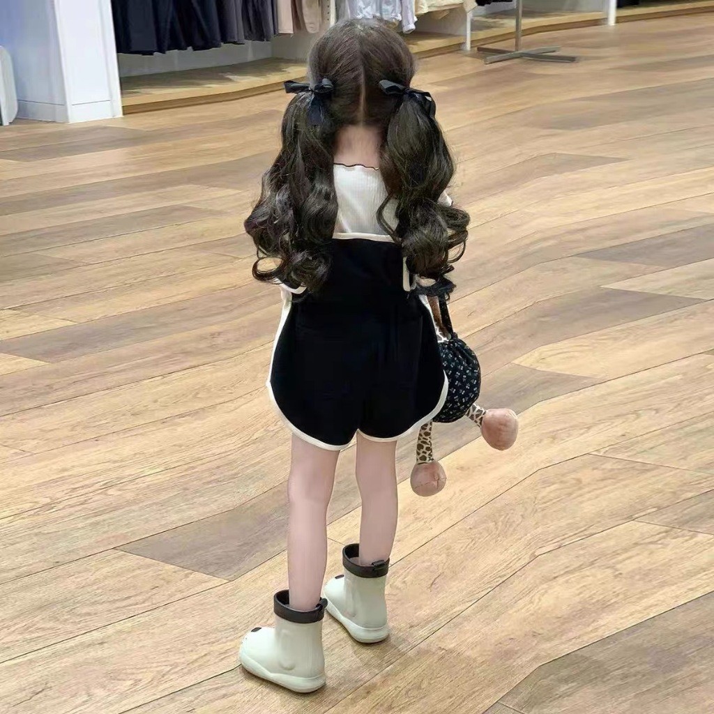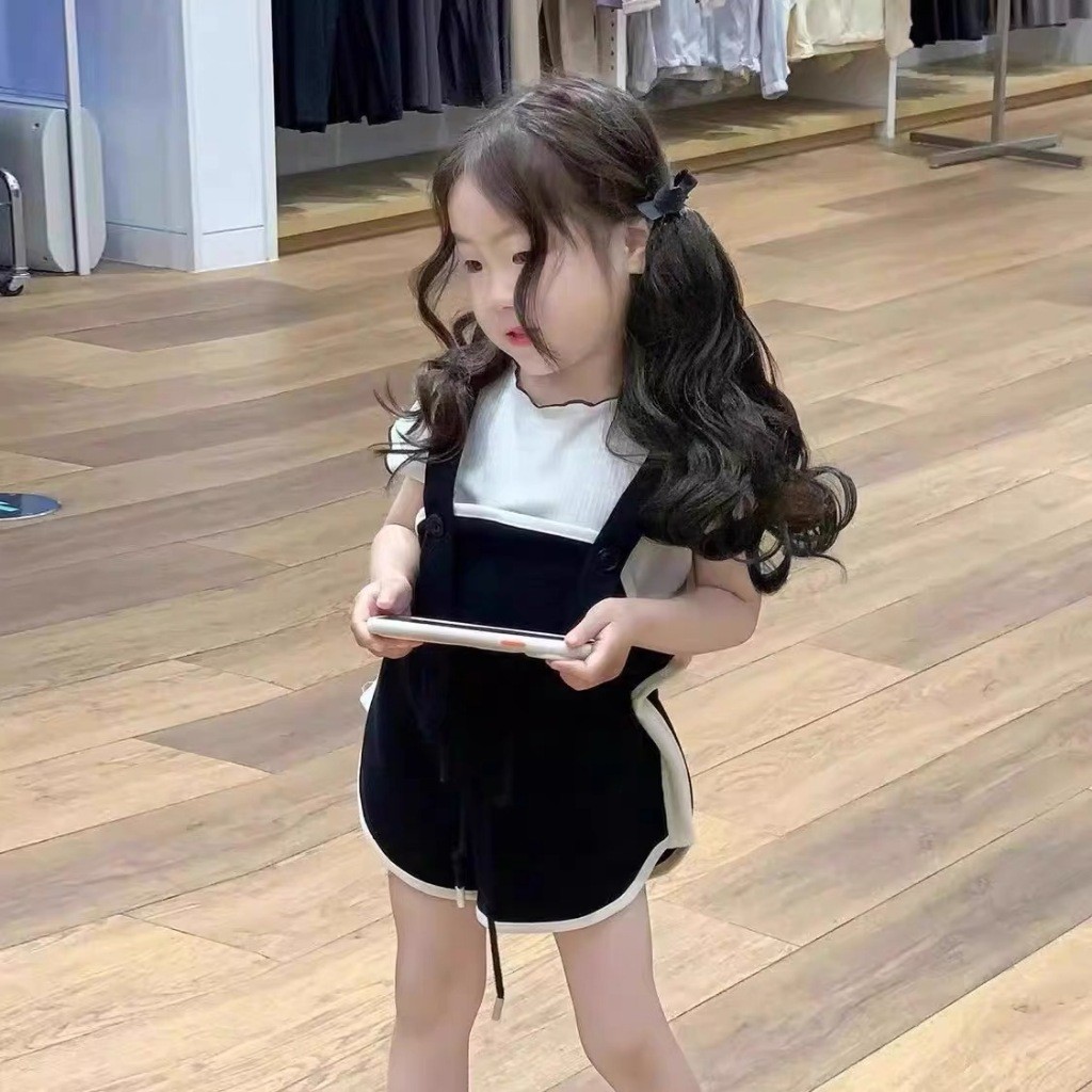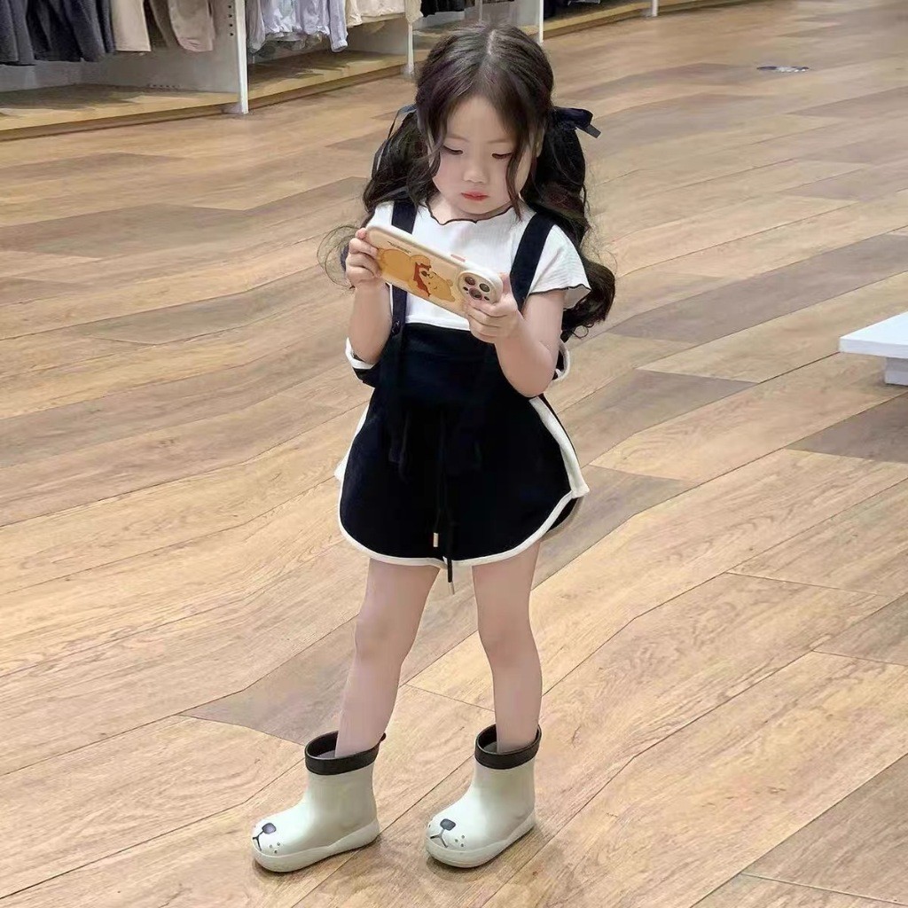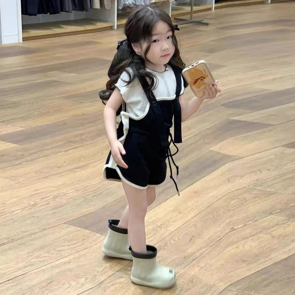 Terbaru set anak cewek Gadis Set Musim Panas 2025 Baru Belt celana pendek + lengan pendek Set Gadis Casual Fashion SIZE