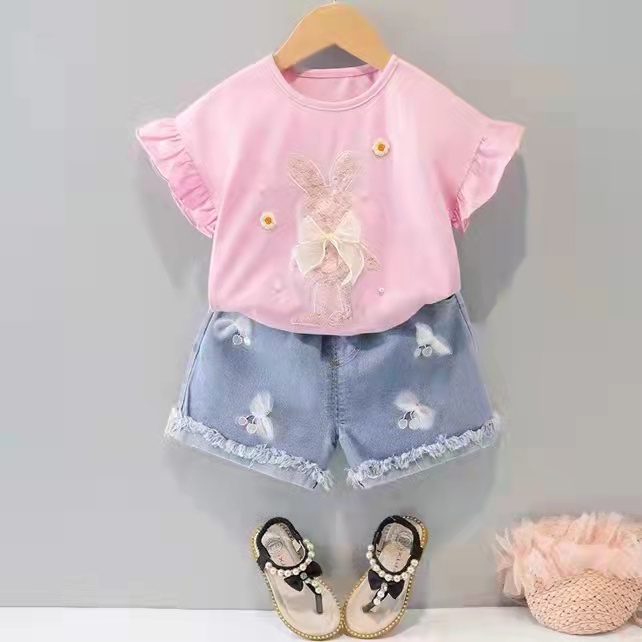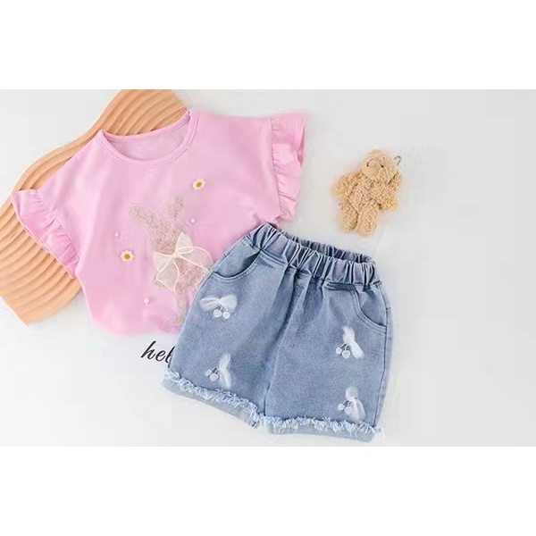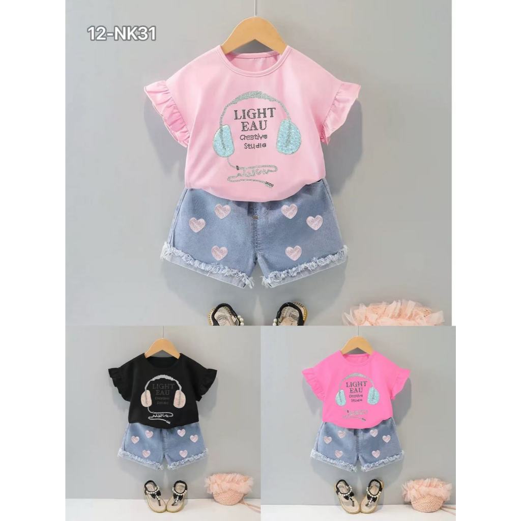 Setelan celana pendek anak cewek / Setelan hotpant anak perempuan / Baju anak cewek/ Pakaian anak import uisa 1-5Tahun