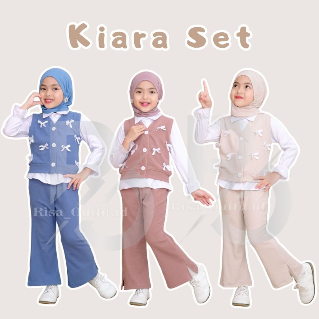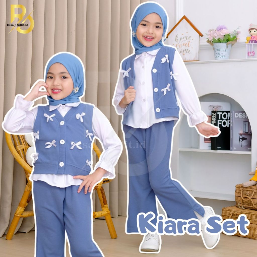 Kiara Set Kids 3in1 Setelan Anak Perempuan 2-9 Tahun / Ribbon Knitt One set / Baju Setelan Kemeja
