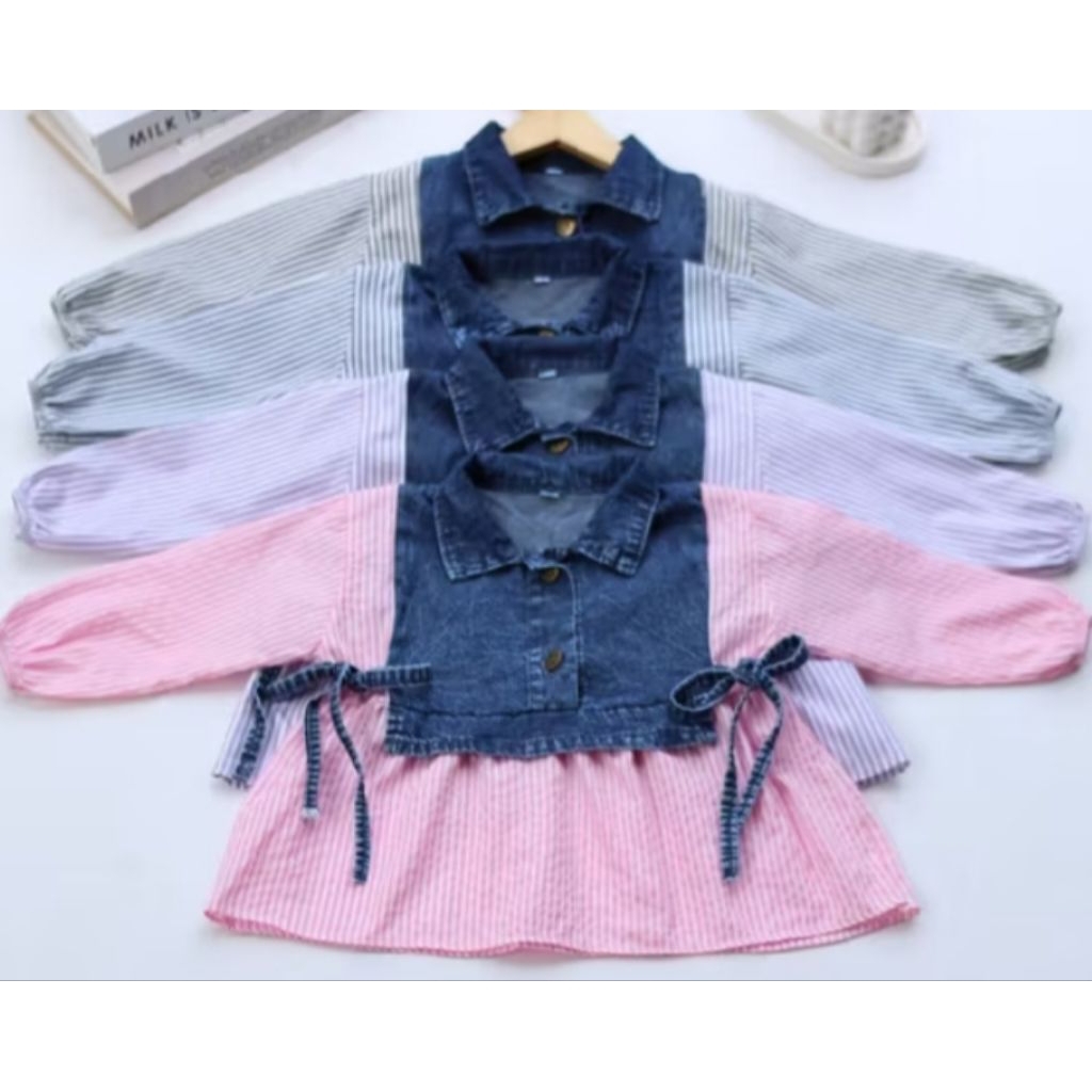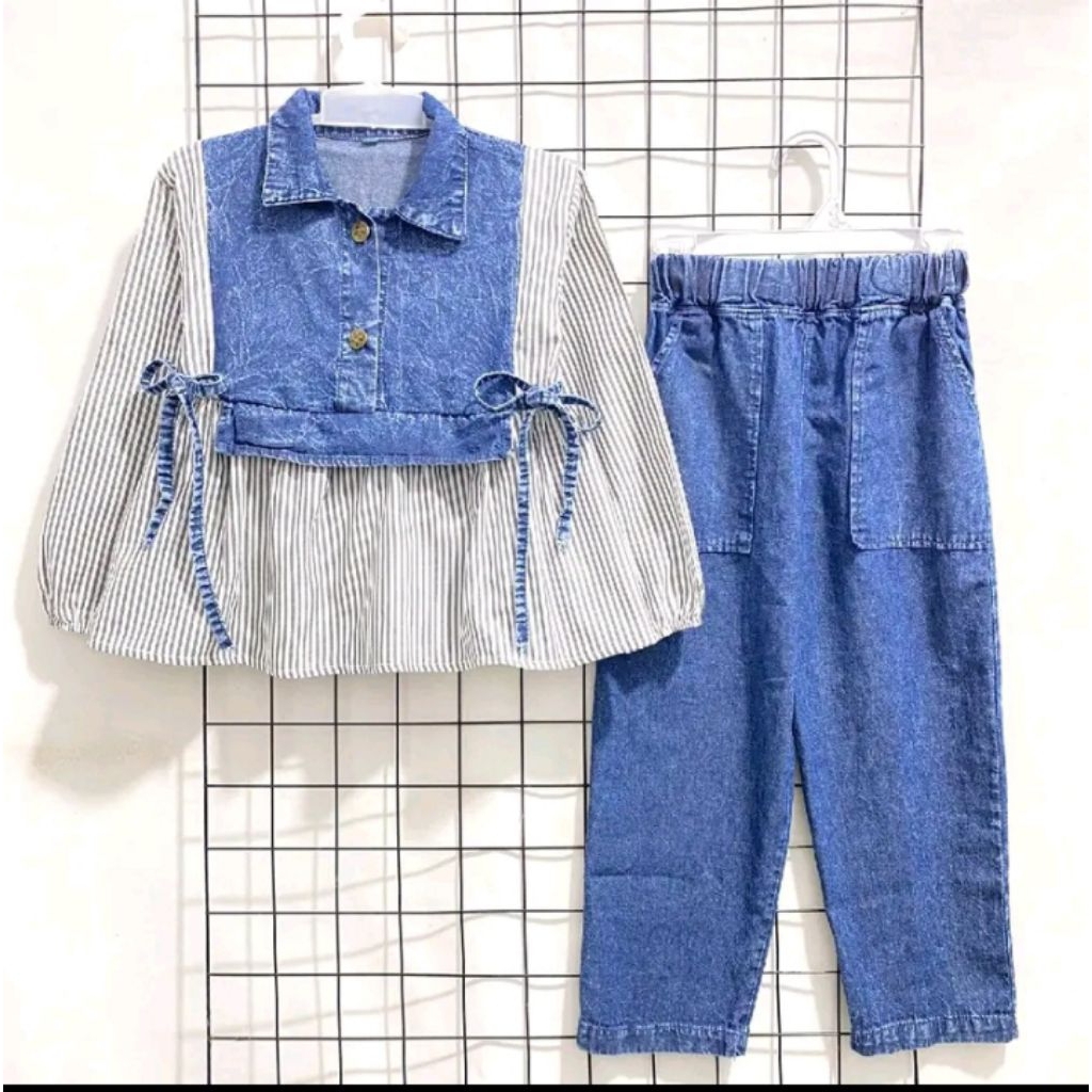 Setelan Jeans Anak Aruna I Atasan Kemeja Motif Salur 2-11 Tahun I Oneset Jeans Anak Kekinian Fashion Anak