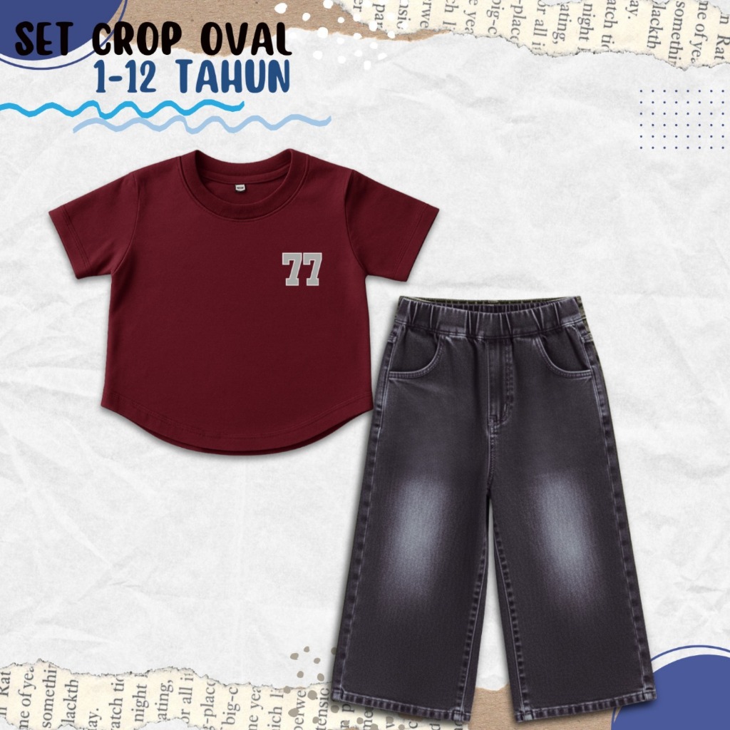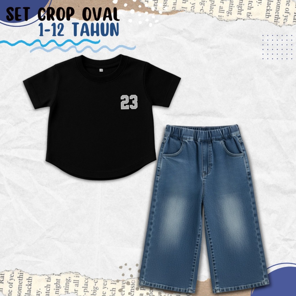 SETELAN KAOS CROP TOP OVAL DAN JEANS POLOS ANAK PEREMPUAN 1-10 TAHUN/OOTD CASUAL ANAK