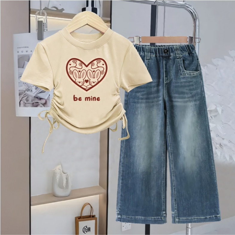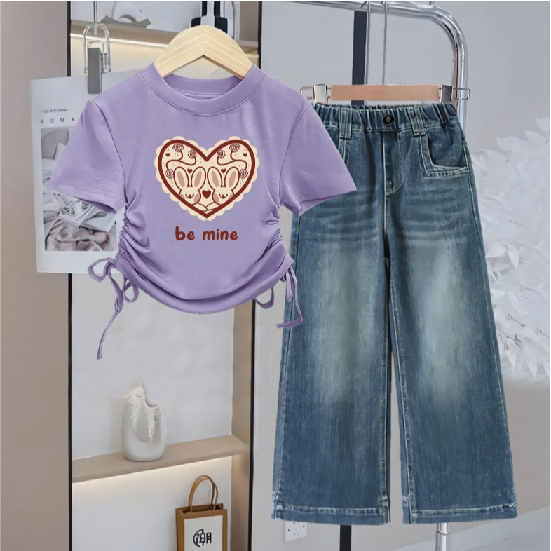 Baju Setelan Anak Perempuan Model Serut Celana Kulot Jeans usai 1 - 12 tahun