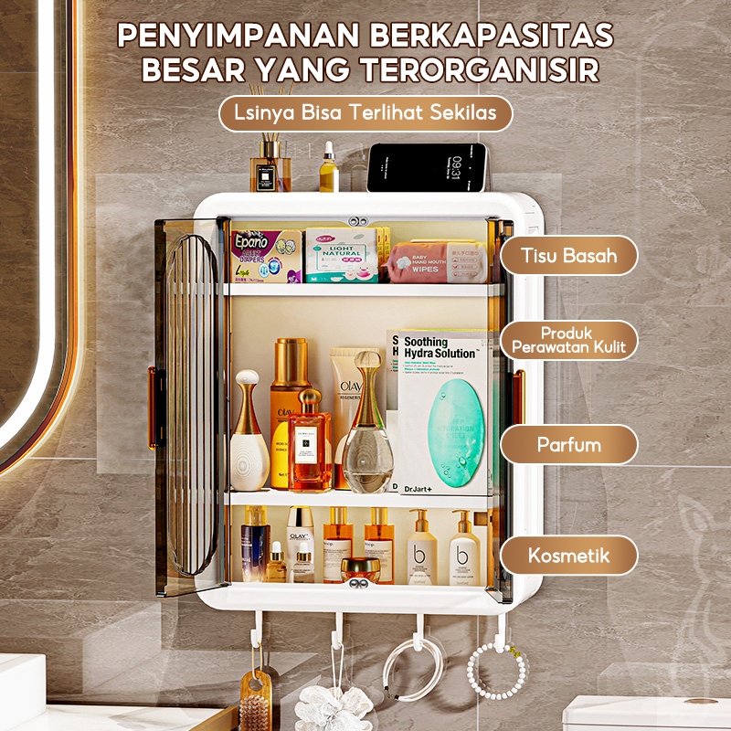 Cubbie Kotak Kosmetik Dinding Anti Debu Plastik Rak kamar mandi multifungsi yang dipasang di dinding