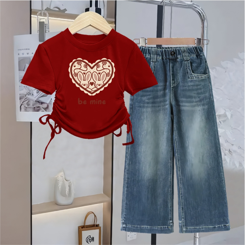 Baju Setelan Anak Perempuan Model Serut Celana Kulot Jeans usai 1 - 12 tahun