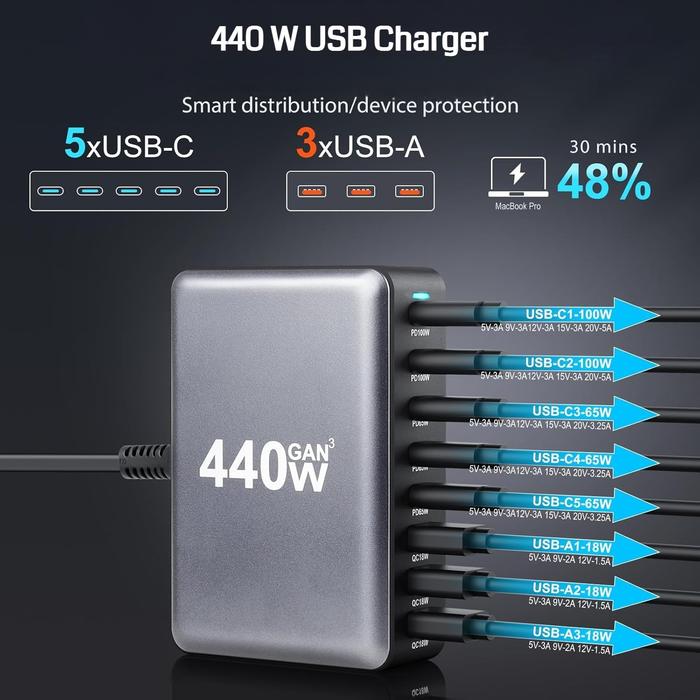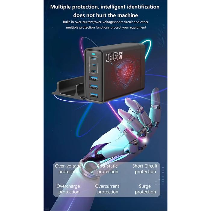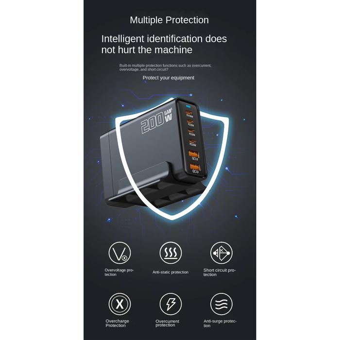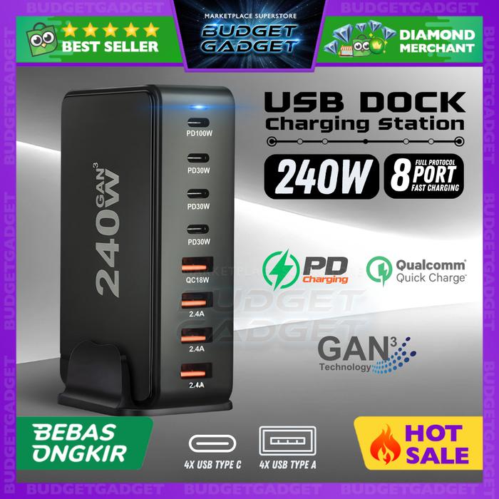 Charging Station Adapter Charger Fast Charging Gan Pro Multi Usb + Type C Pengisi Daya Cepat Adaptor Colokan Pd Qc Gan3