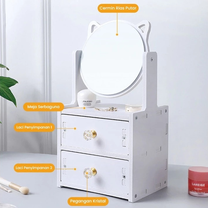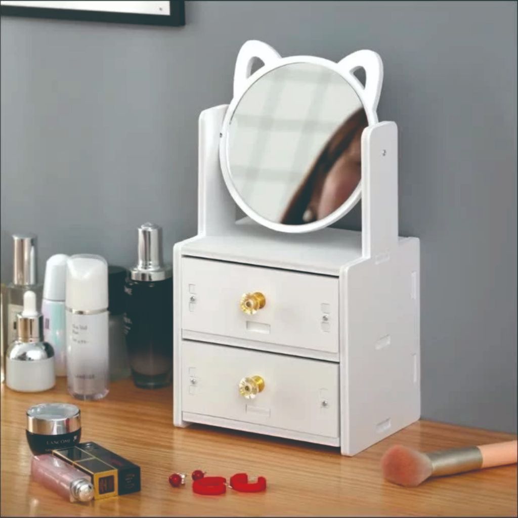 Rak Laci Cermin/Rak Makeup 2 Susun Dengan Cermin / Rak Kosmetik Tempat Make Up / Rak Cermin Make Up 2 Susun /