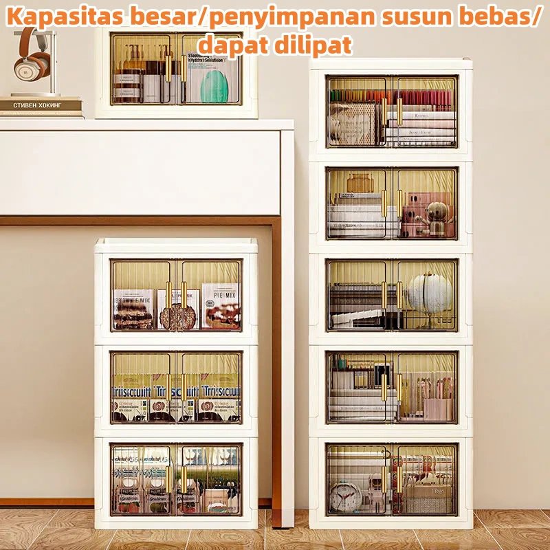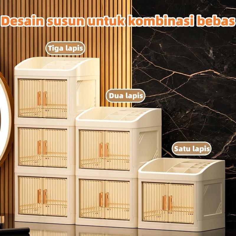 Kotak Penyimpanan Kosmetik Desktop Tahan Debu Dengan Laci Rak Penyimpanan Kosmetik Pintu Ganda