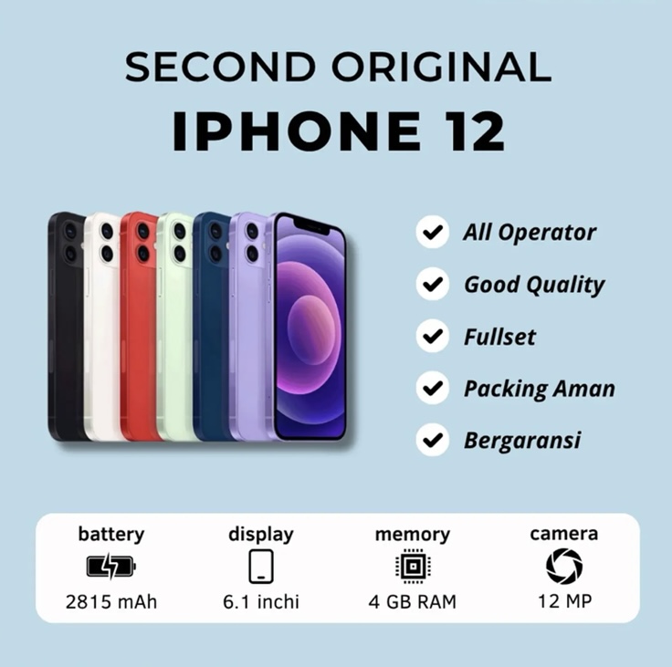 IPHONE APPLE 12 64GB 128GB 100% ORIGINAL SECOND APPLE / KONDISI MULUS LIKE NEW / 3UTOOLS HIJAU SEMUA