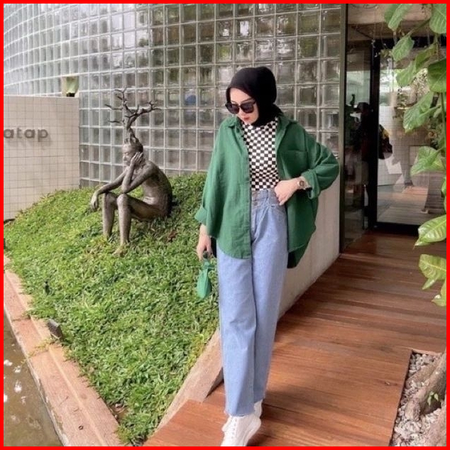 Atasan Linen Kemeja Wanita Linen Oversize Model Olivia Shirt Bahan Linen Premium