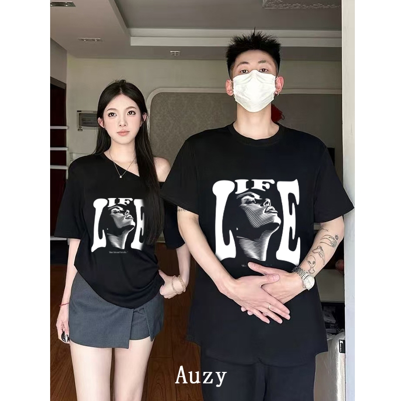 AUZY RISE PUNK Pasangan Atasan tanpa bahu kaos pria wanita atasan Lengan Pendek T-shirt skena baju oversize t shirt