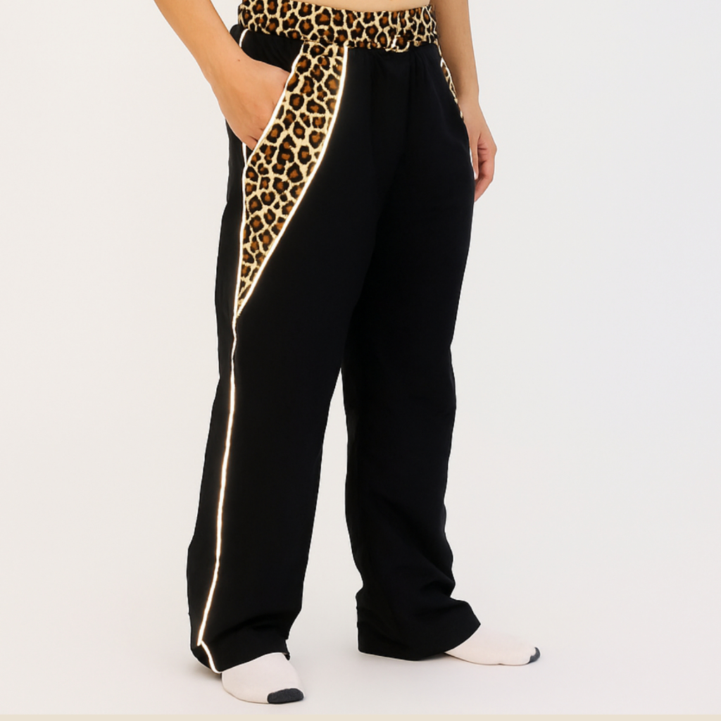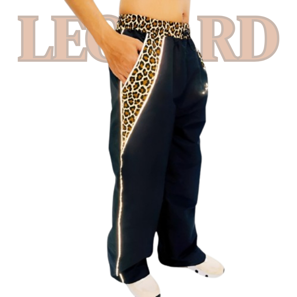 Y2K Celana Vintage Pria Wanita Panjang Leopard Baggy Pants Reflective List
