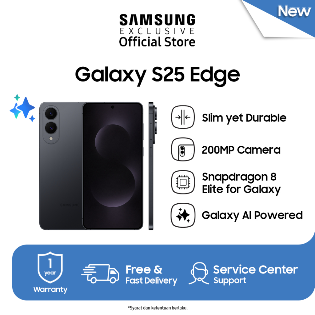 Samsung Galaxy S25 Edge 12/256GB - Titanium Jetblack | Smartphone AI | Kamera 200MP | Handphone Tipis | Prosesor Snapdragon 8 Elite