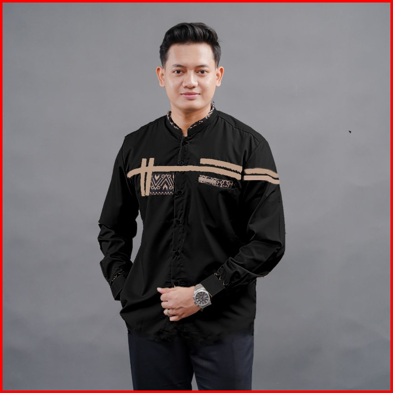 Baju Koko Muslim Lengan Panjang Kombinasi Batik Original Ar Ribhan Bahan Katun Pakaian Pria Dewasa Baju Kemeja Koko Puti