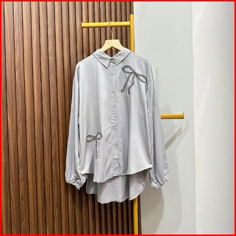 Glaudy Shirt Kemeja Rayon Twill Polos Motif Pita Bordir Atasan Wanita Kekinian Koreanstyle Terbaru Elegan