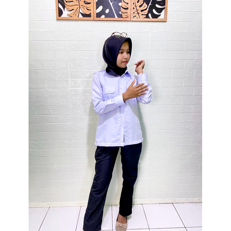 Setelan Seragam Baju PDH Putih Hitam Wanita Bawahan Celana Rok Span Hitam Atasan Kemeja Putih Kerja Dinas PNS Cewek Mode