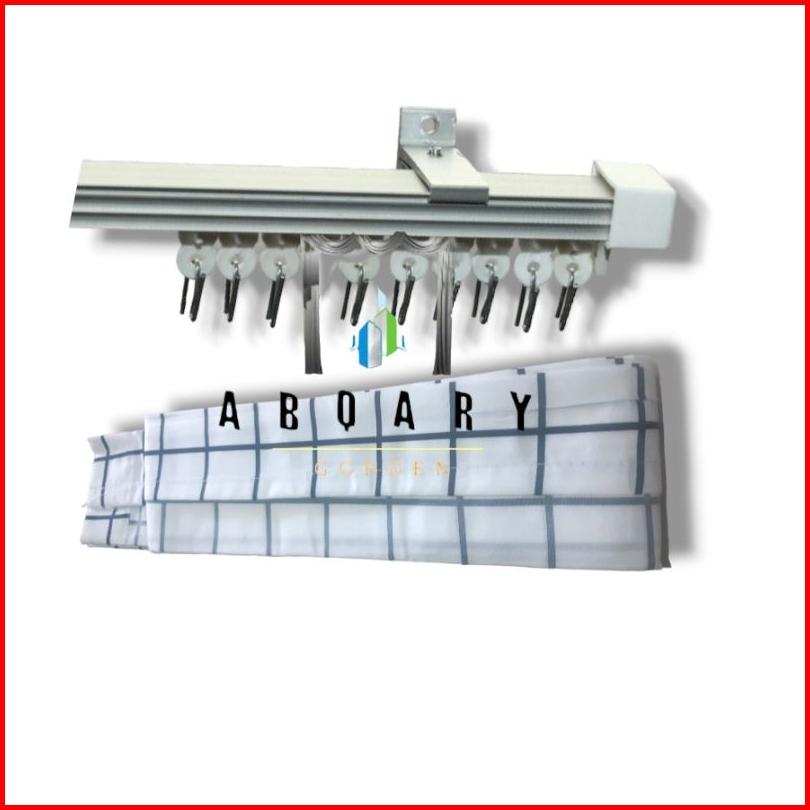 Gorden Jendela Motif Kotak 1 Set Sama Besi Dan Cantolan Hordeng Pintu Full Set Siap Pasang Gorden Plisket Aesthetic