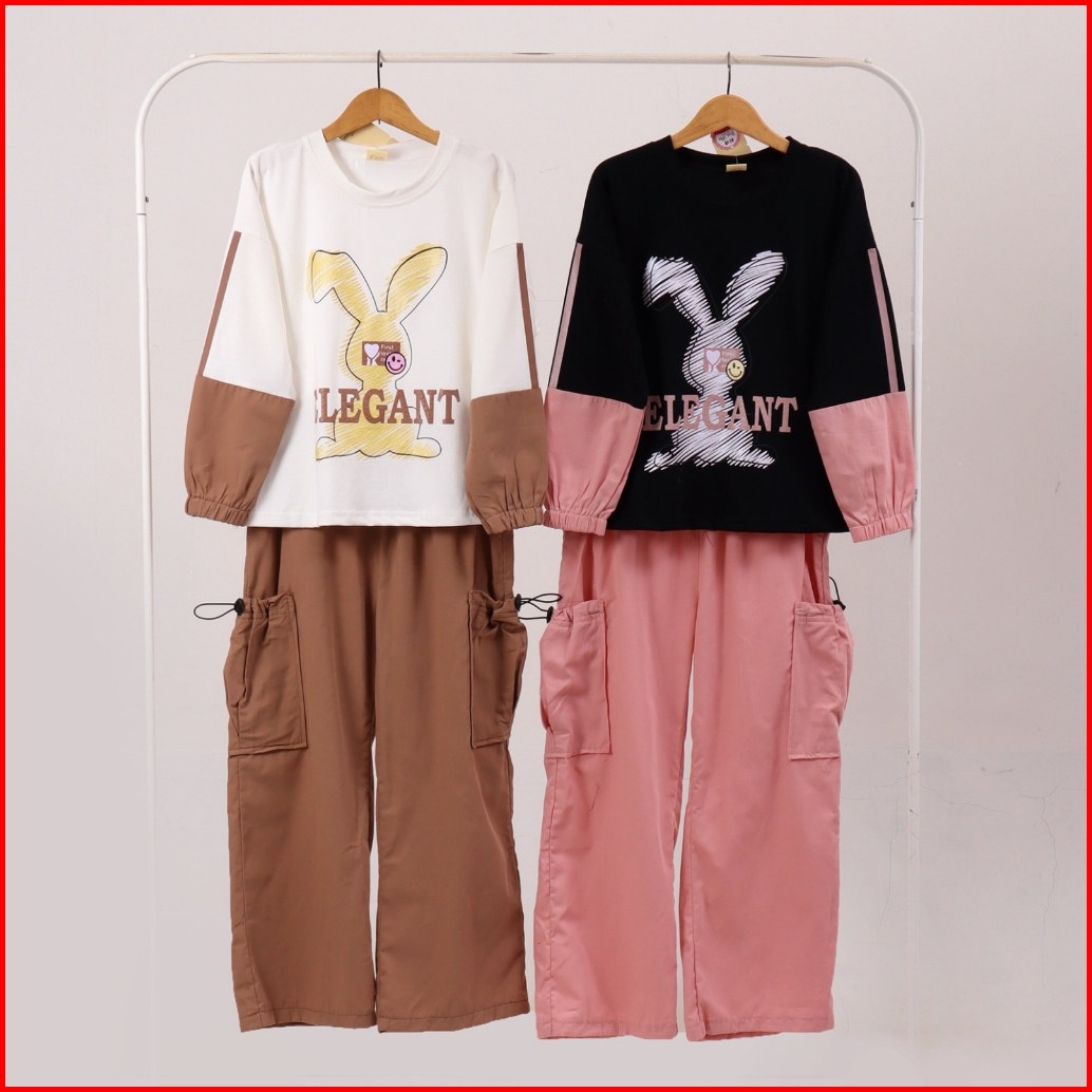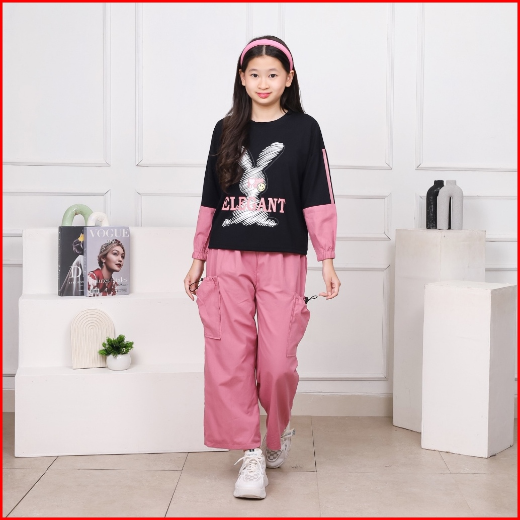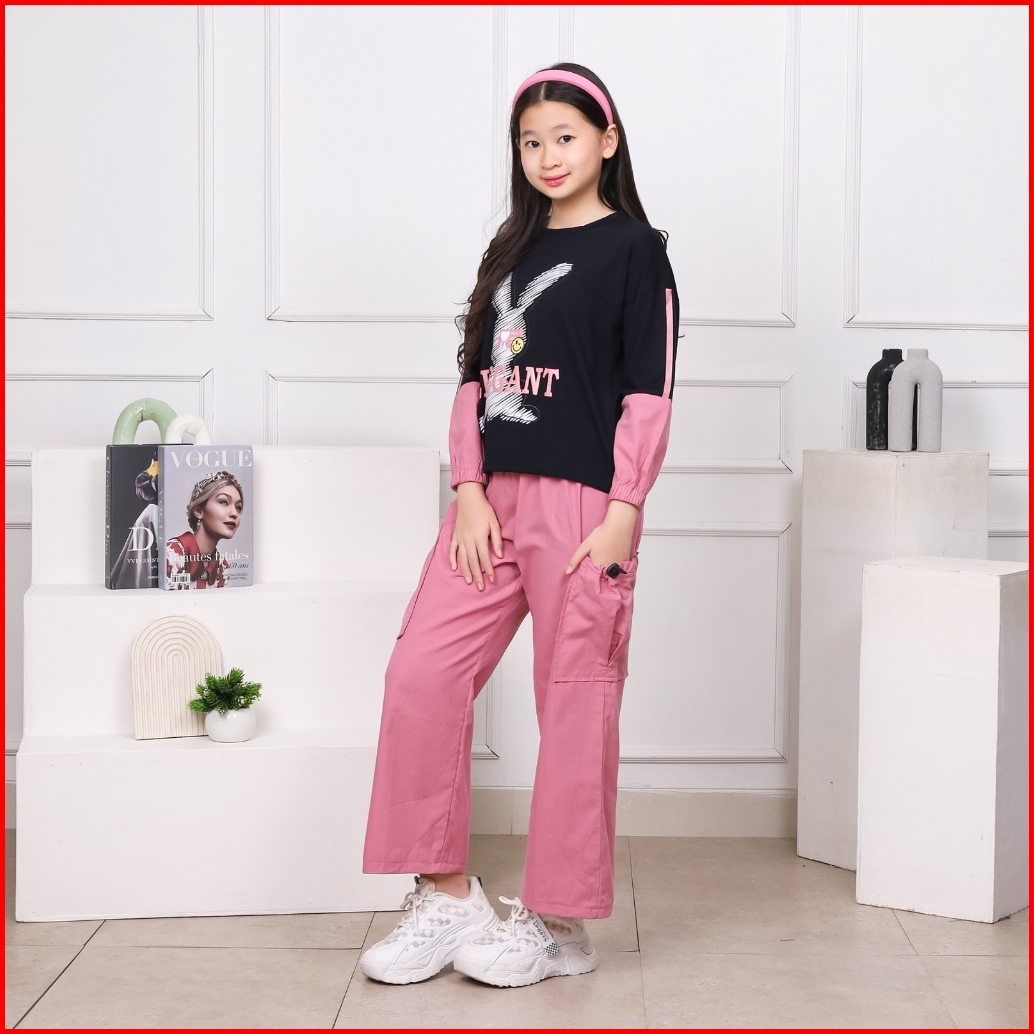 Sunfloapparel 6-15 Tahun Baju Anak Perempuan One Set Cargo Kids B857