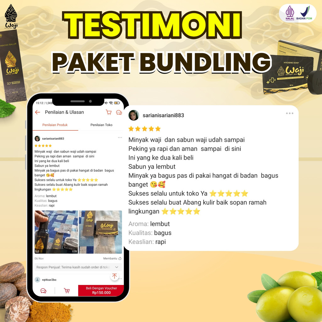 Waji 1 Minyak Waji & 2 Sabun Waji Antibakteri Obat Herbal Atasi Gatal Masalah Kulit Kusam Eksim Ruam Biduran Kudis