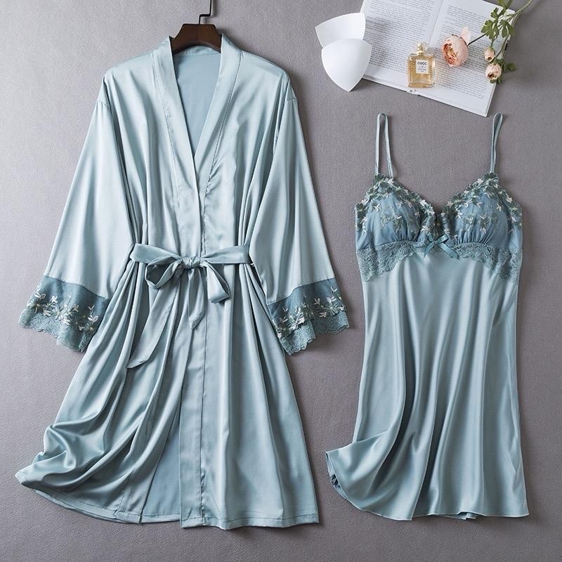 NOVI - One Set Kimono Lingerie Baju Tidur Sexy Kimono Dress Tidur Wanita Baju Dinas Malam Adem Lembut Ice Silk Premium
