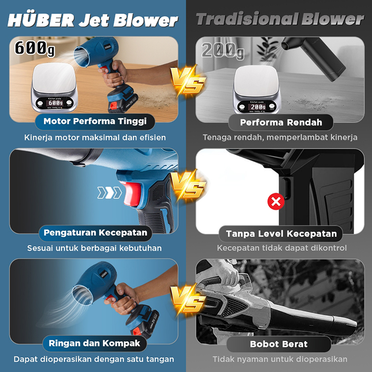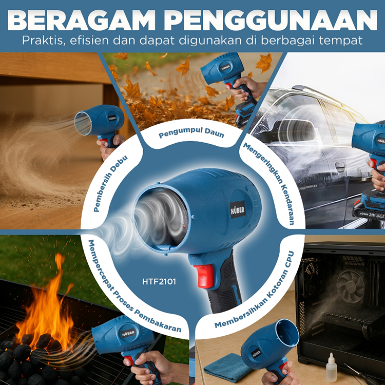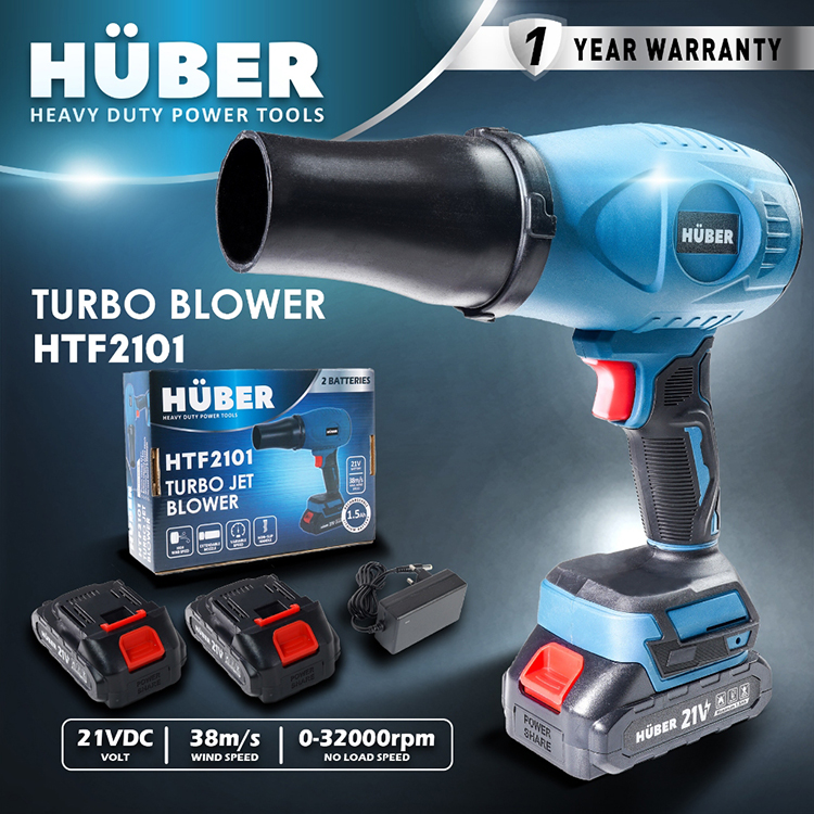 HUBER HTF2101 Turbo Jet Fan Blower 21V Cordless Mesin Blower Kipas Angin Jet Pembersih Debu Daun