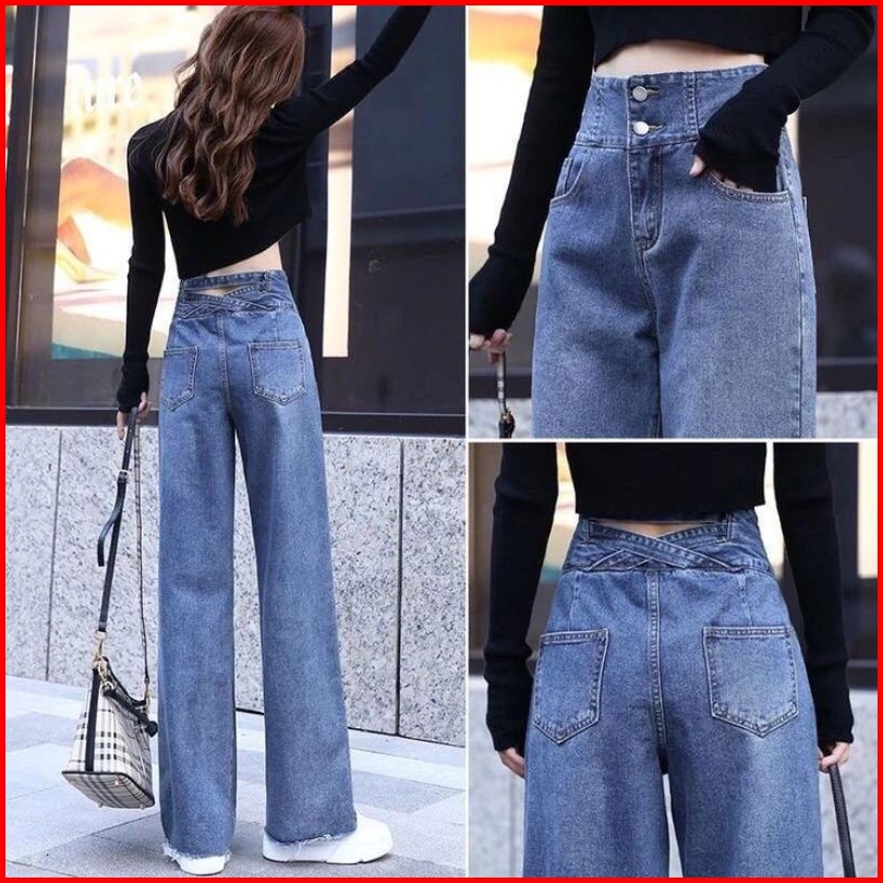 Kulot J23 Celana Kulot Wanita Jeans Model Silang Belakang