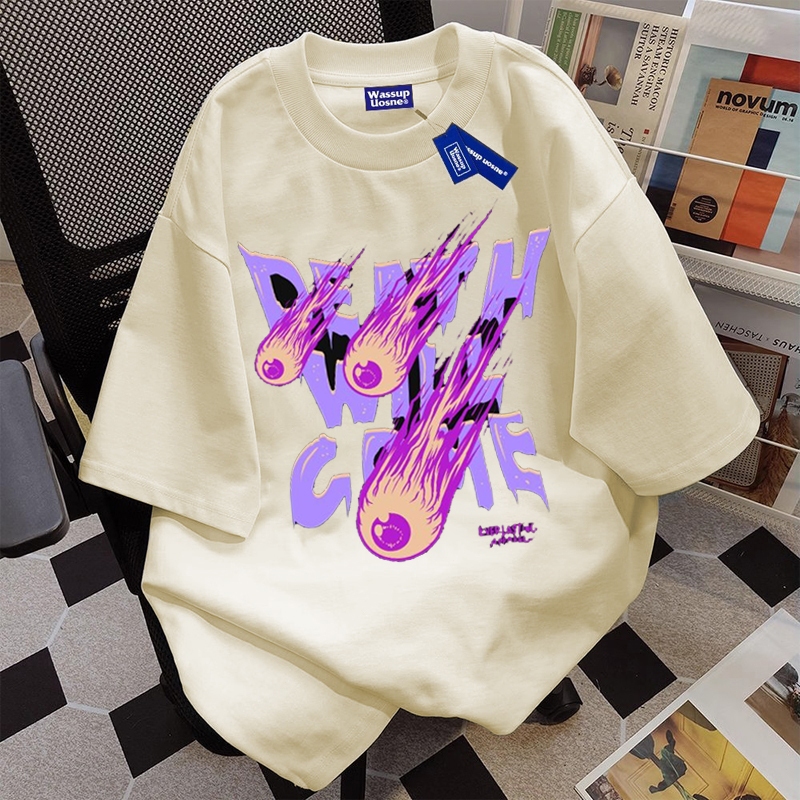 BOOMBAP American retro Style T-shirt Oversize Flame letters Print top| Kaos Wanita Hitam | Kaos pria dan wanita | Street Style 100 PERSENCotton top 6.13