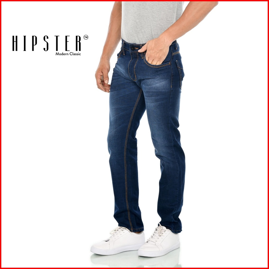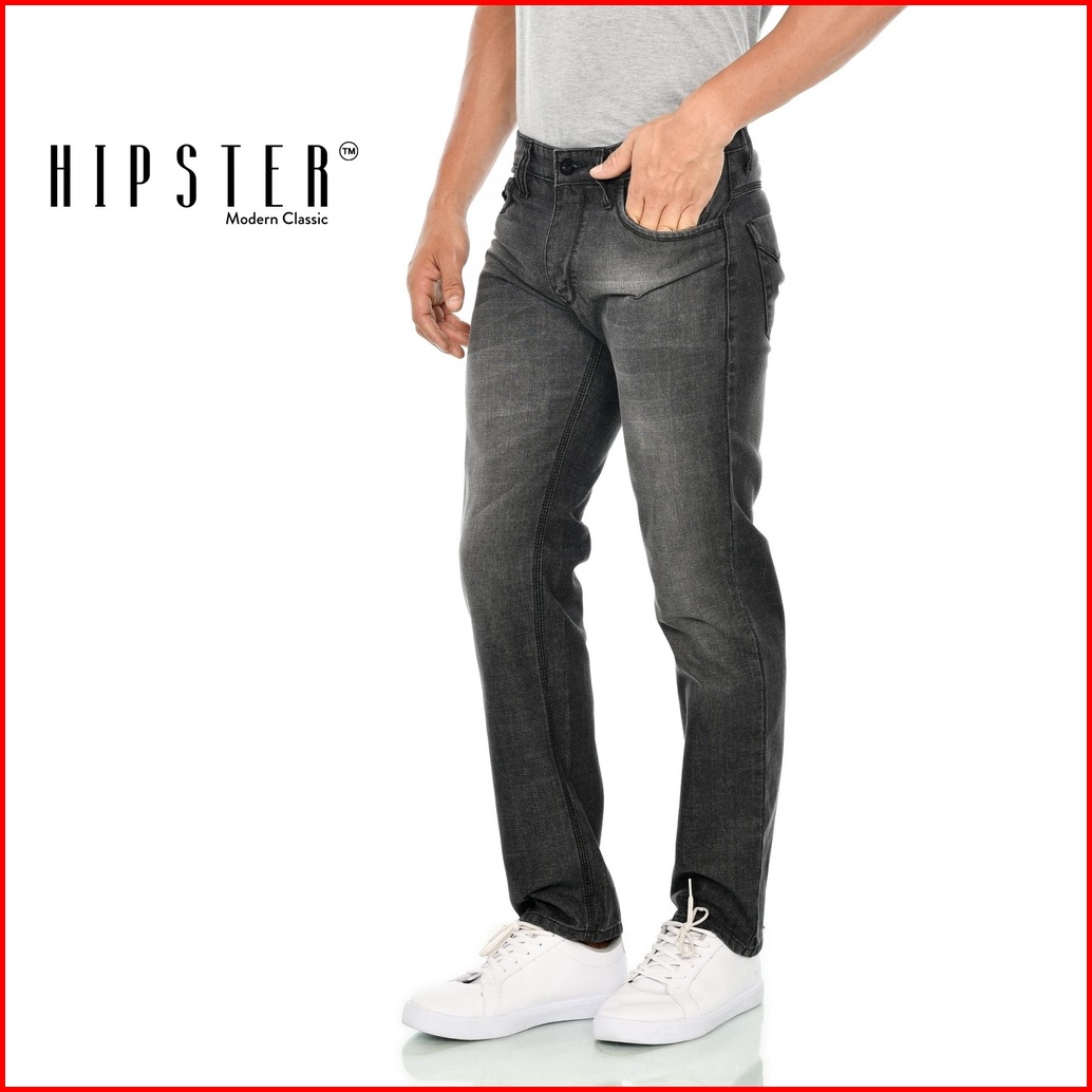 Hipster Orijeans Celana Panjang Denim Standar Pria Whisker Black