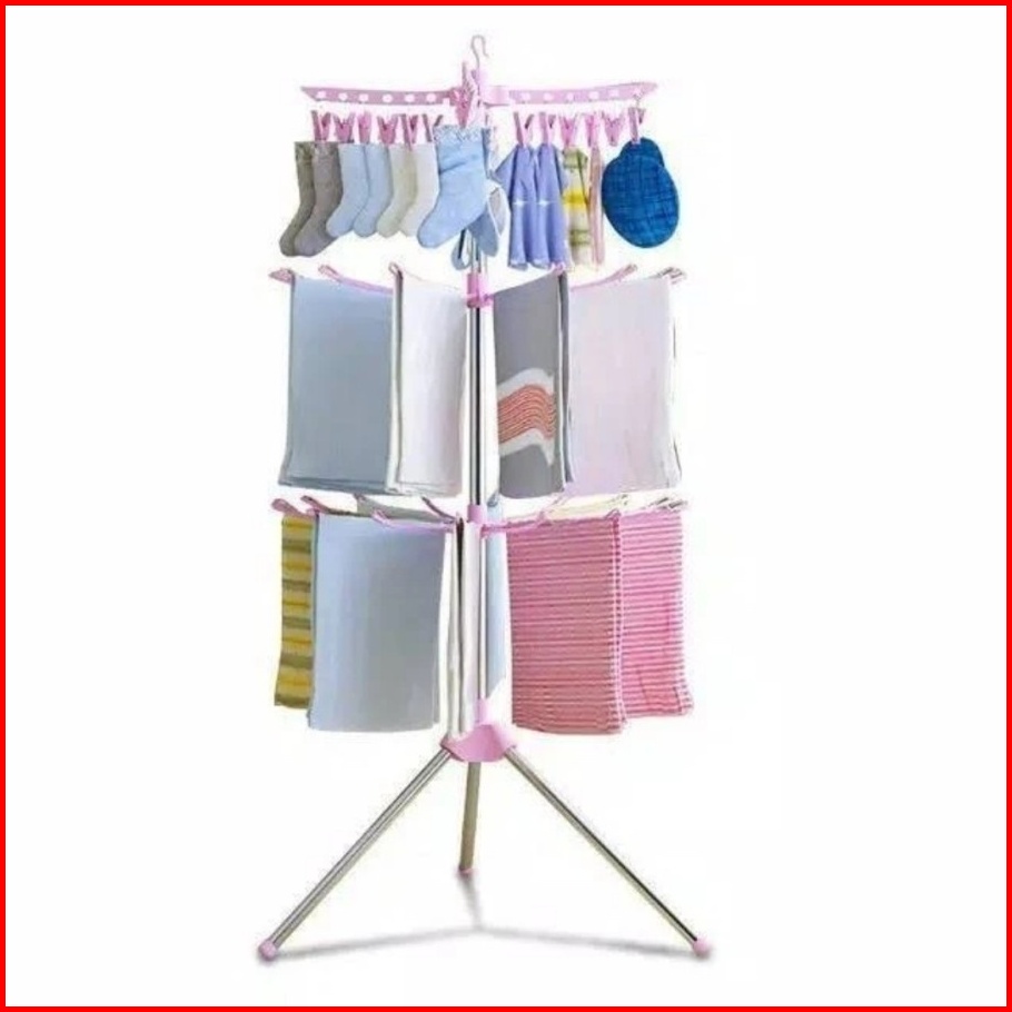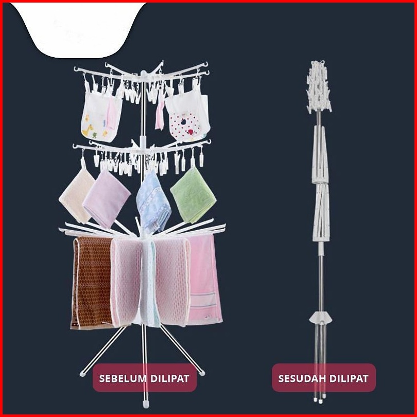 Jemuran Menara Lipat 3 Tingkat Susun Baju Bayi Stainless Hanger