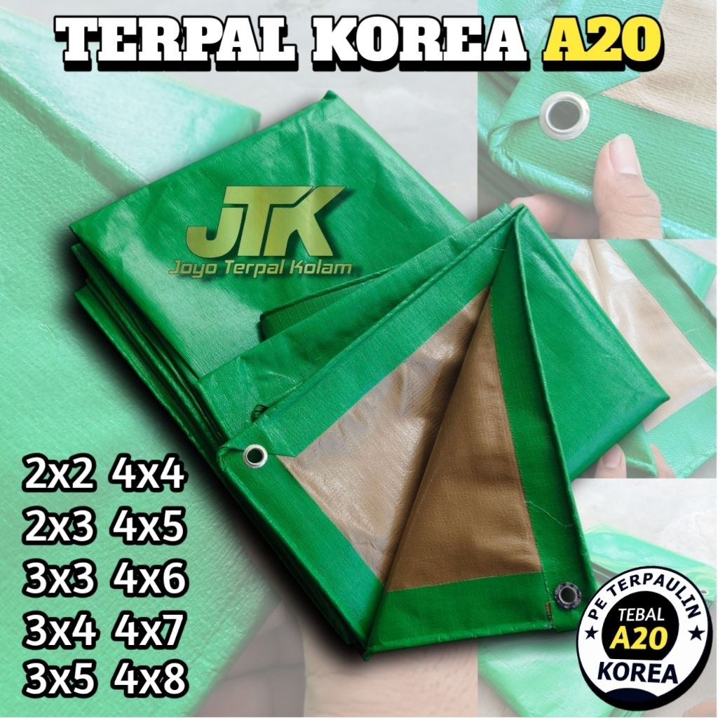 TERPAL TEBAL A20 KOREA Hijau Gold Super UV Tahan air Ukuran 2x2 2x3 3x3 3x4 3x5 4x4 4x5 4x6 dll.