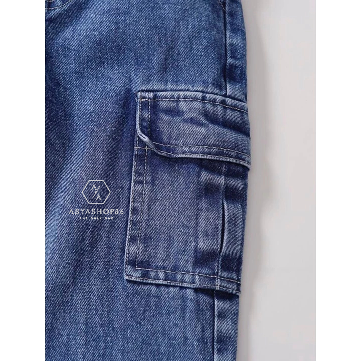 Celana Cargo Jeans Anak Laki-Laki Usia 1-7 Tahun - Bawahan Panjang Cargo Denim Anak Cowok Terbaru Viral - Celana Kimpul