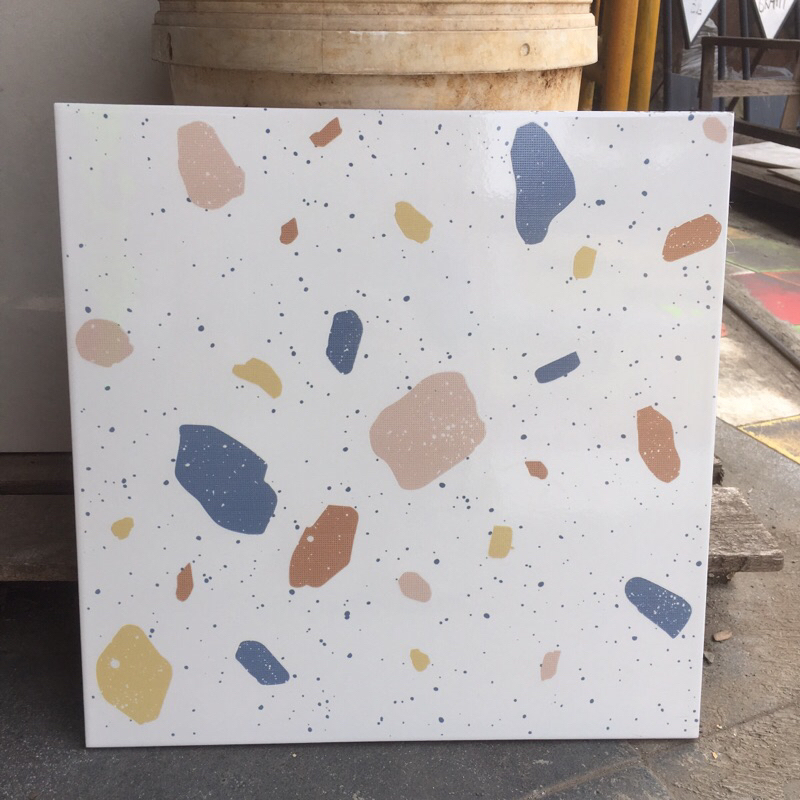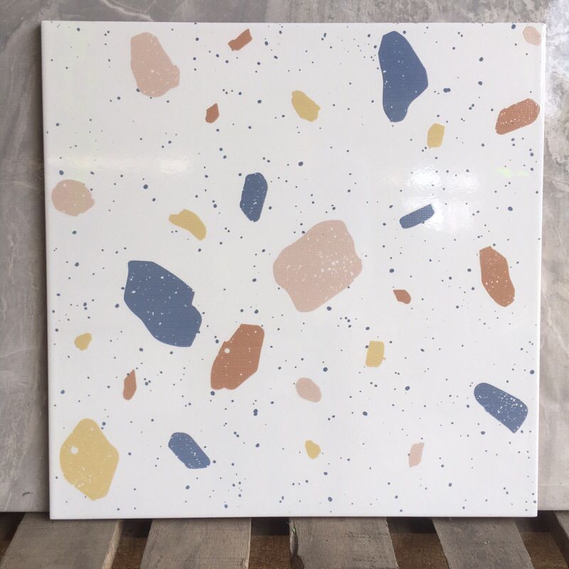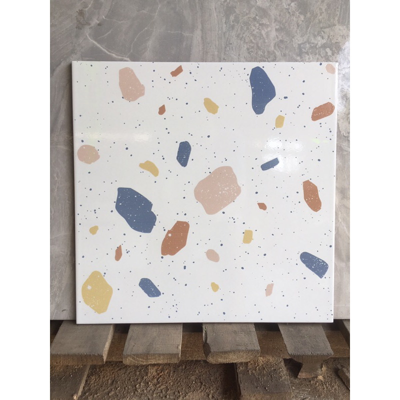 keramik 40x40 lantai dinding dapur toilet wc kamar mandi teras terazzo terazo teraso milan glossy kilap glosy bintik war