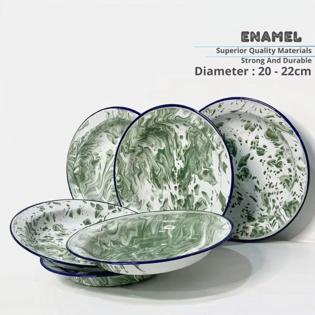 Piring enamel,piring jadul blirik 22cm,20cm 12 pcs