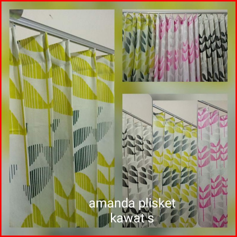 Gorden Plisket Tirai Minimalis Motip Satin Bridal Tebal Model Cantolan Kawat Lebar Jadi 120 Cm