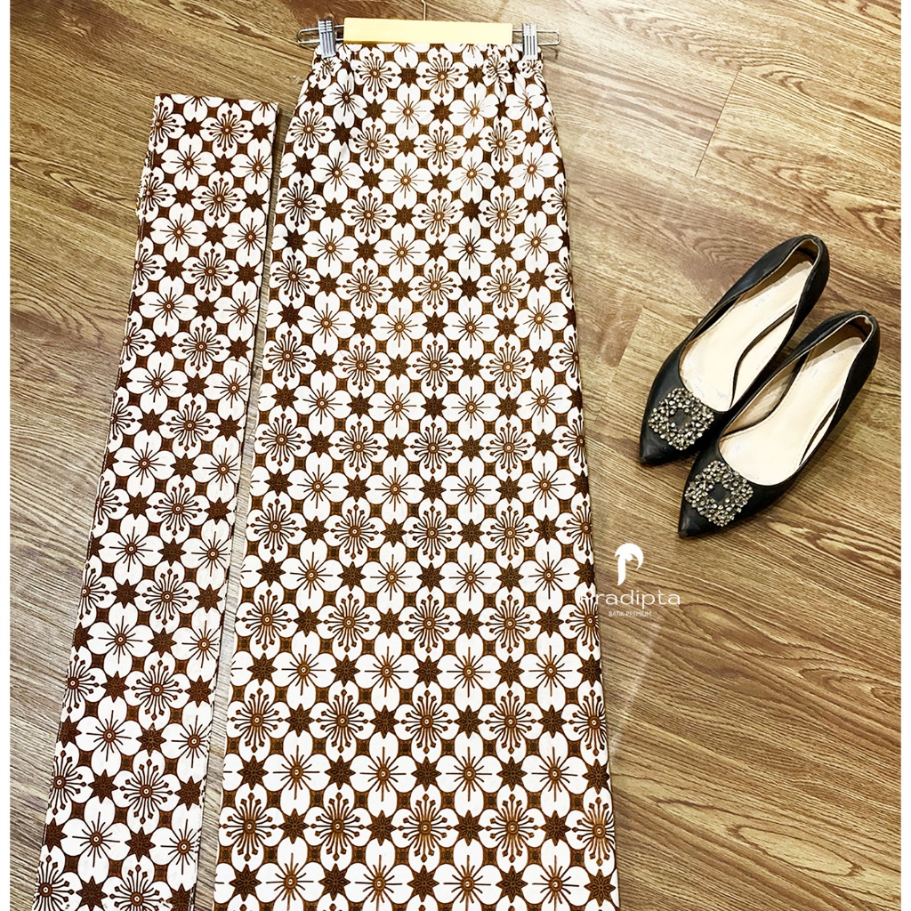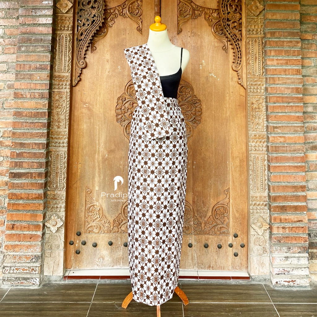 PRADITA BATIK - Rok Span Batik Wanita Modern Motif KAMALA Rok Span Batik Free Selendang Nuansa Warna Putih Coklat Motif Kekinian Rok Batik Bawahan Kebaya Terbaru