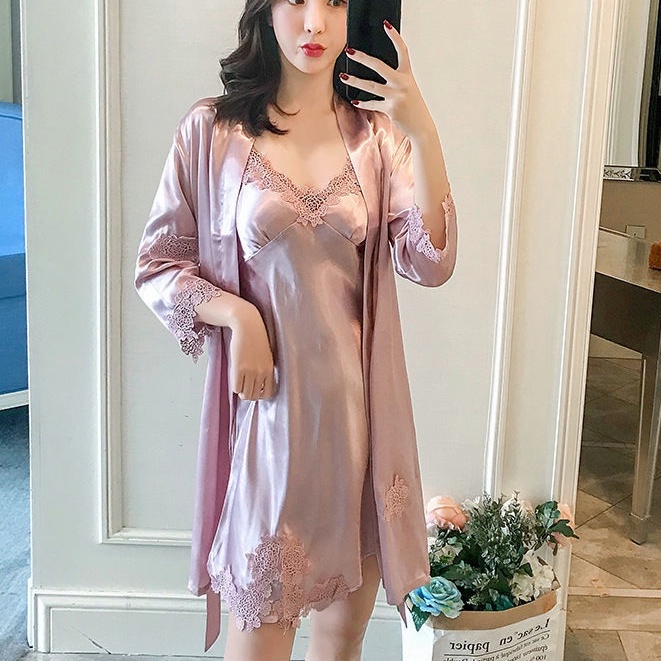 Pakaian Tidur Modern Satin Bermutu Tinggi Baru / Kimono / Pakaian Tidur Wanita