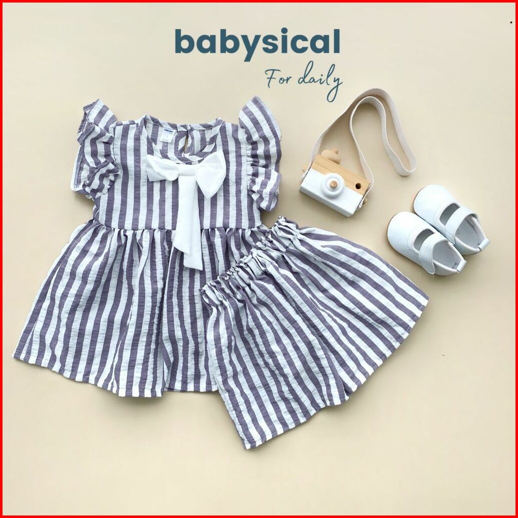 Babysical 1-6 Tahun Bonia Ribbon Strip Set - Set Baju Anak Perempuan Lucu Rayon Setelan Baju Anak Perempuan Dress Celana