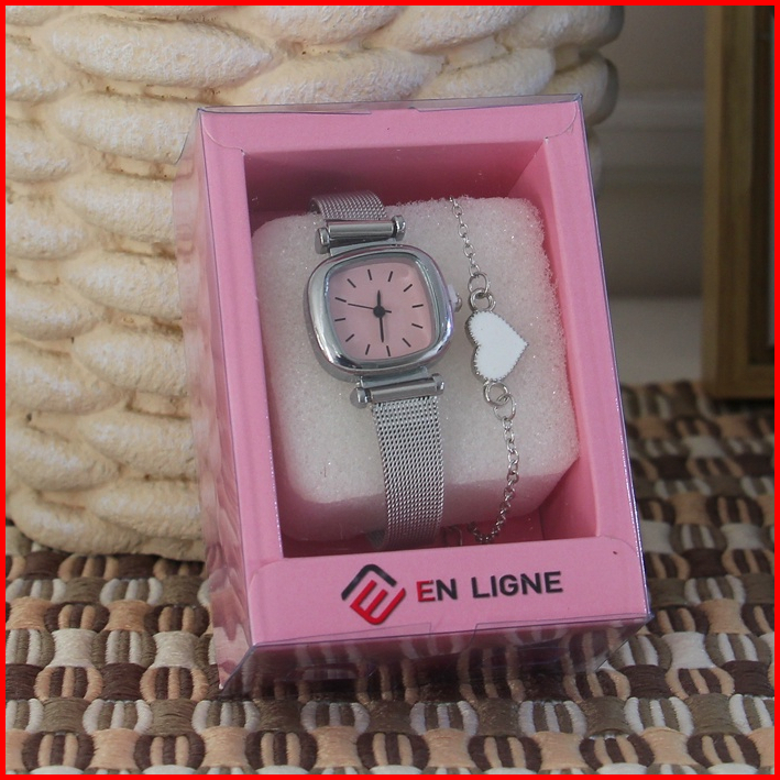 En Ligne - El117 - Jam Tangan Fashion Wanita Kotak Segi Bonus Gelang Dan Box