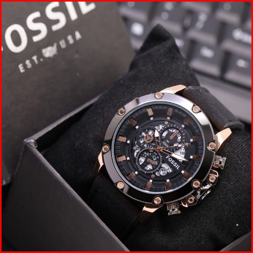 Free Box Ori Jam Tangan Pria Kulit Fashion Tanggal Aktif Free Baterai Cadangan S149