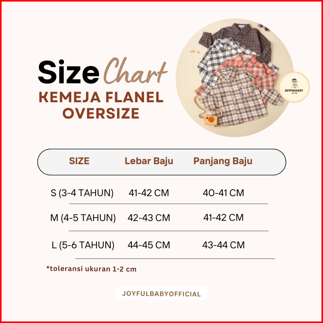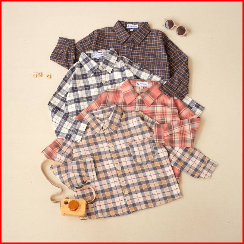 Joyfulbaby Kemeja Lengan Panjang Anak Flanel Oversize Premium
