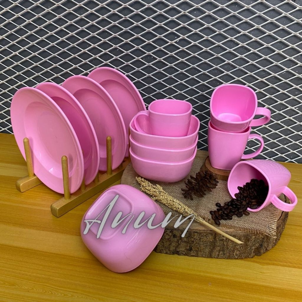 paket piring diner semi milamine bahan tebal kokoh sangat brkualitas dapat satu lusin paket campur glas mangkok dan piri