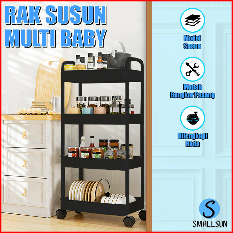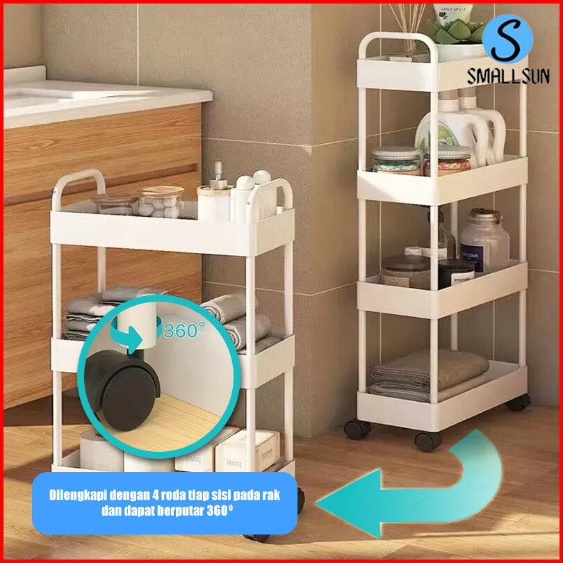 Ss Rak Susun Troli 4 Susun Serbaguna Dengan Roda Pegangan Rak Troly Kamar Mandi Bahan Plastik