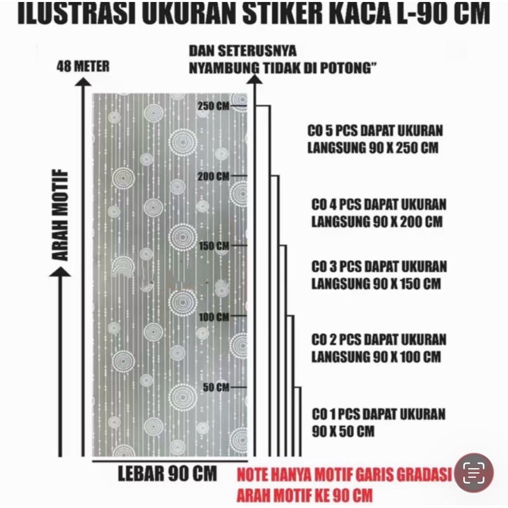 Sticker Kaca Tidak Tembus Pintu Jendela Rumah Berkualitas Anti Panas Buram L90CmxP50Cm Top Marketop Super Top