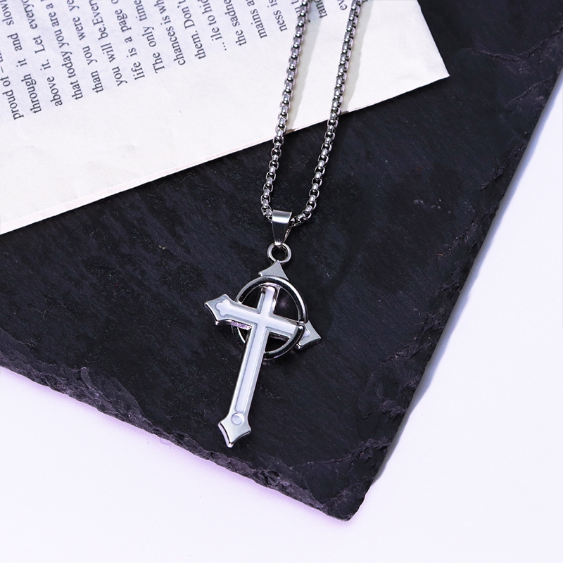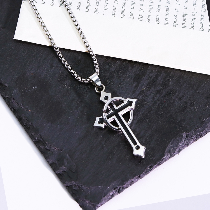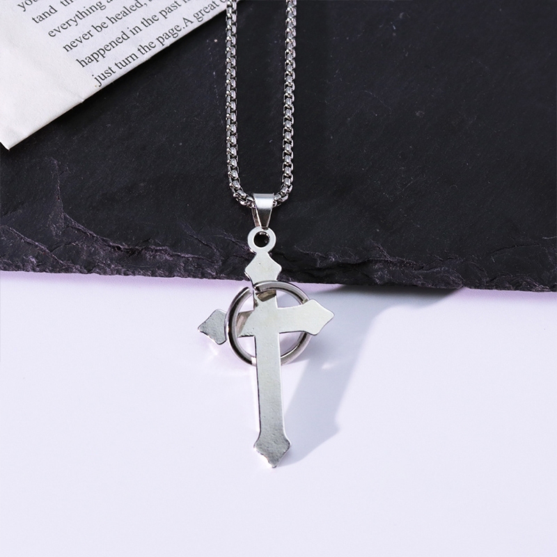 Kalung Salib Hip-hop Trendi Kalung Wanita Elegan Klasik Unisex kalung dari baja Serbaguna Keren Fashion Aksesoris -SO