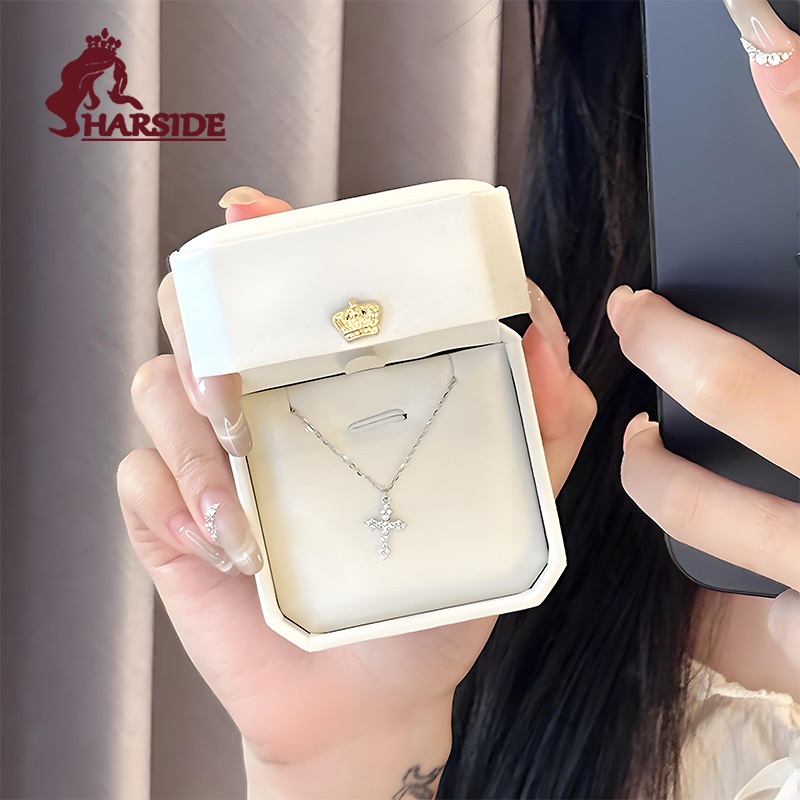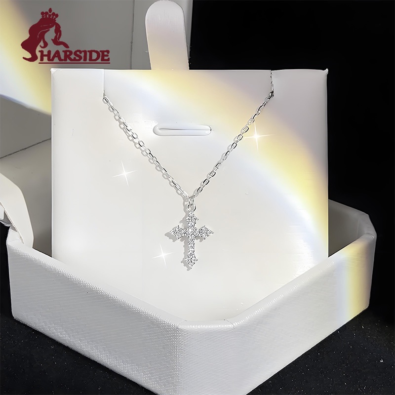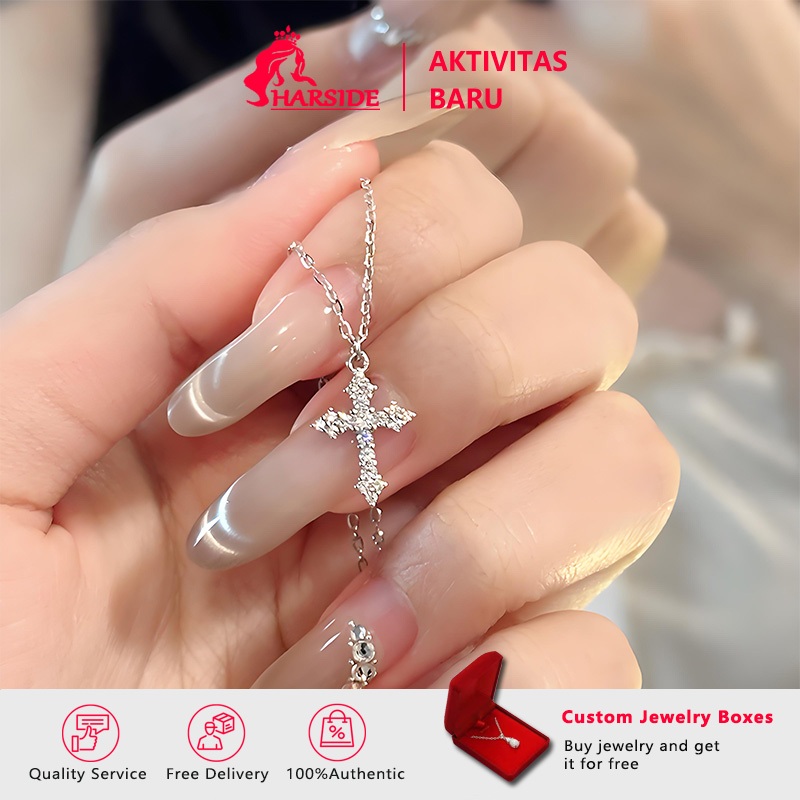 Free Gift Box Kalung Silver 999 dengan Liontin Salib Full Berlian - Desain Mewah dan Eksklusif untuk Perempuan - Hadia