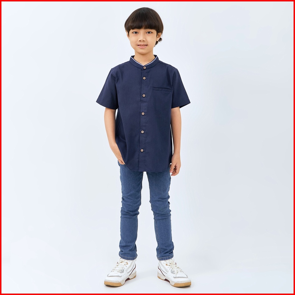 M231 Kemeja Anak Laki Laki Shanghai Polos Oxford Pendek Navy 2667d