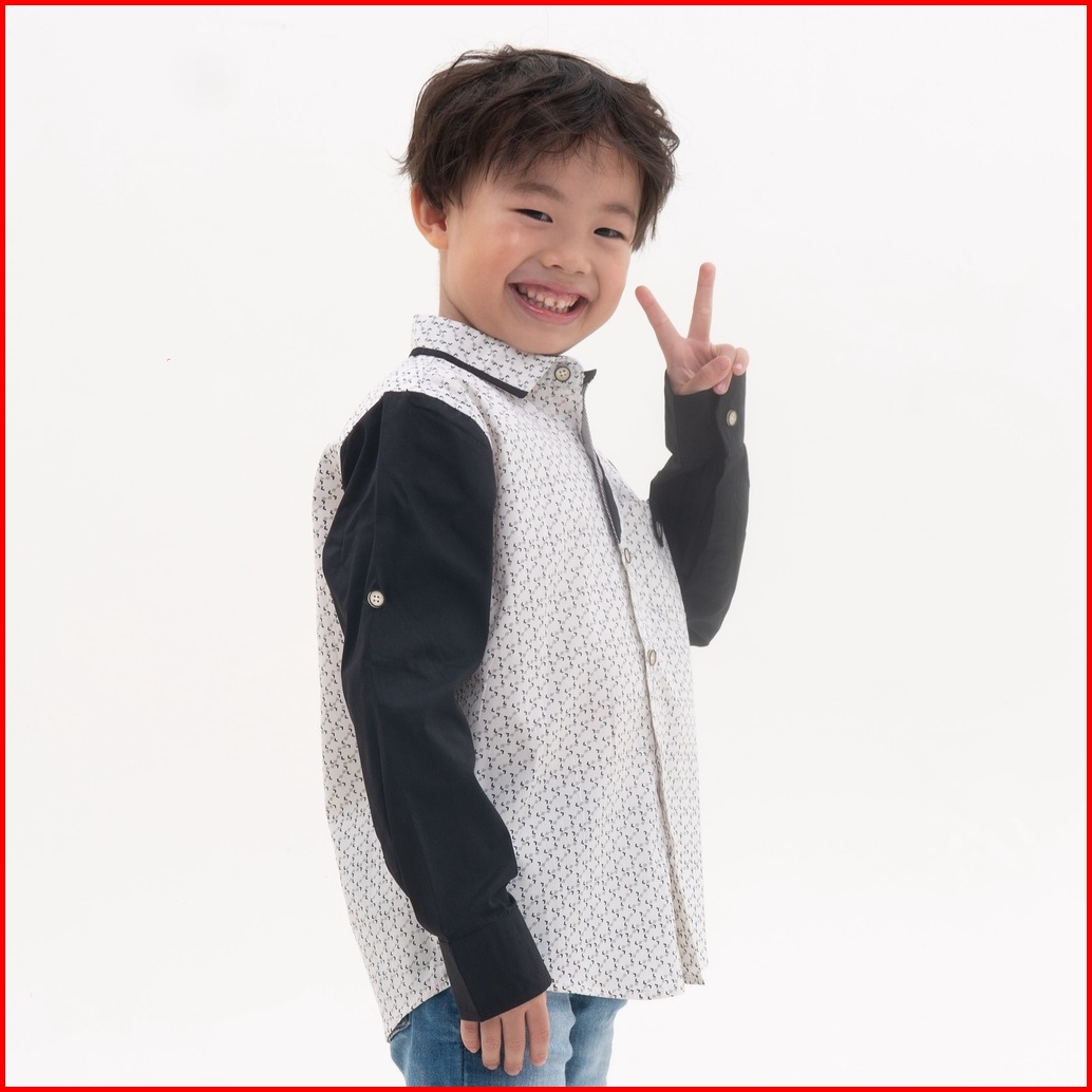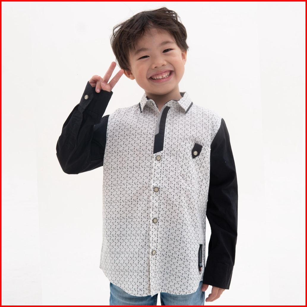 M231 Kemeja Anak Laki Laki Printing Panjang Abu 0863b