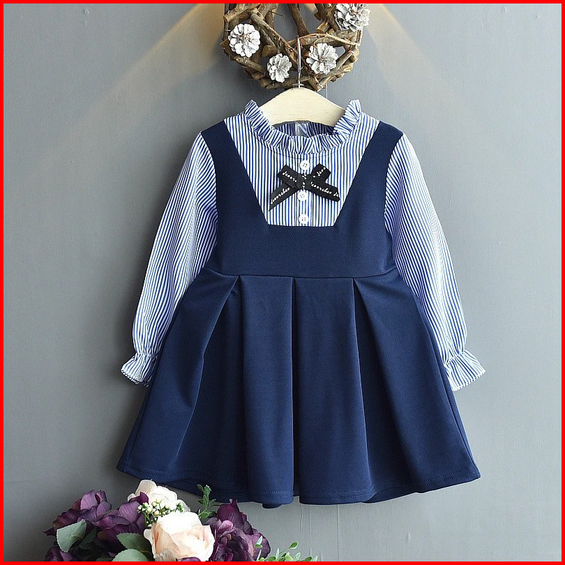 0-5th Dress Anak Navy Salur Baju Kids Perempuan Murah Lengan Panjang Navy